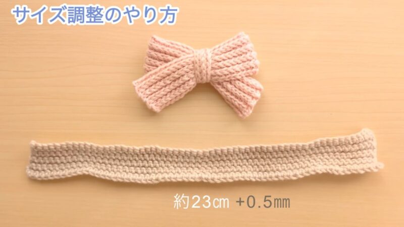 ただ、サイズは作り目の長さでリボンの全長を、段数でリボンの幅を自由に変えられます。